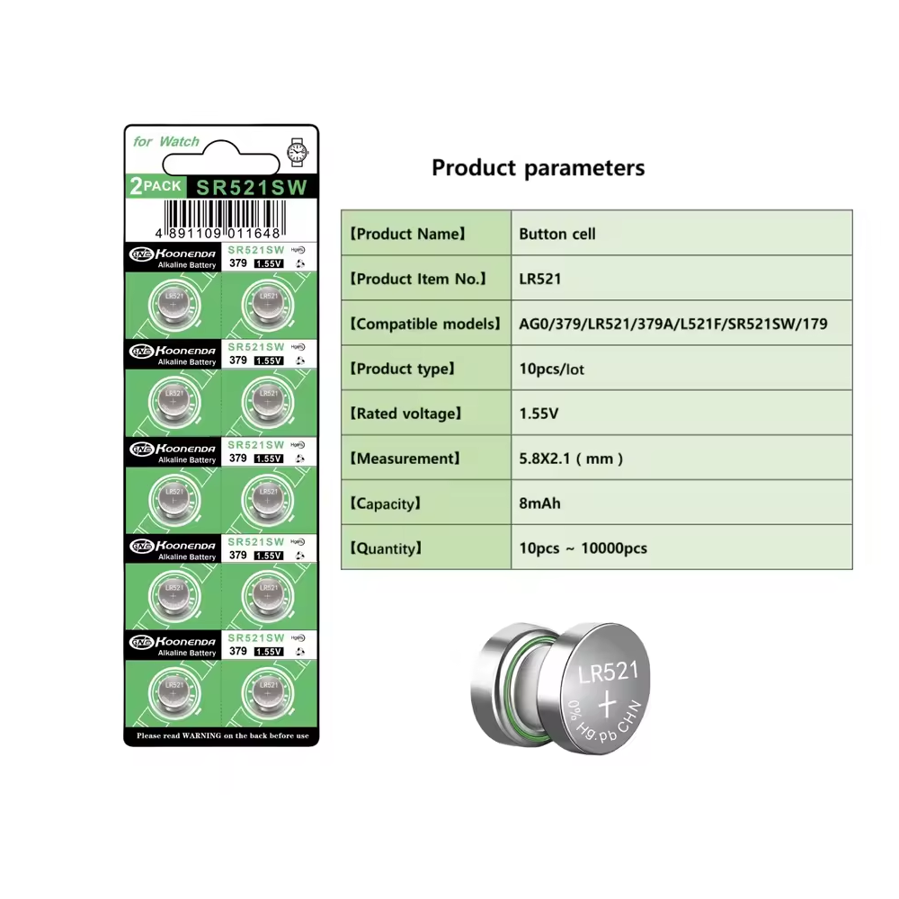 - 10x Pilas de Botón AG0 / LR521 / 379 / SR521 1.55V