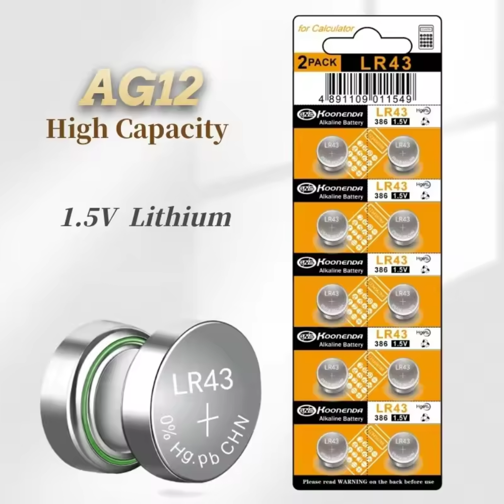 Este blíster contiene 10 unidades de la pila de botón alcalina modelo AG12, una solución energética fiable y duradera para una amplia gama de dispositivos electrónicos de bajo consumo.