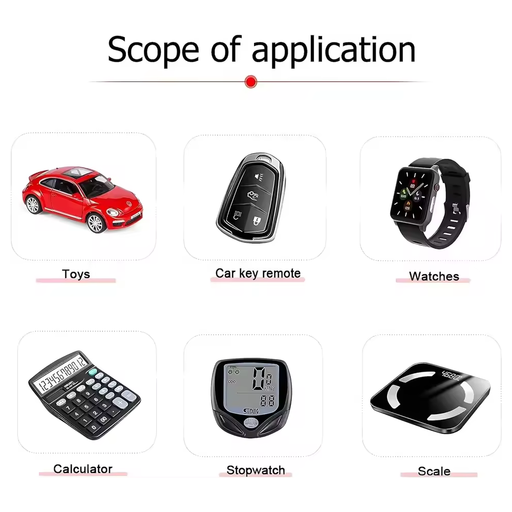 Gracias a su voltaje estable de 1.55 V, son perfectas para alimentar equipos como relojes, calculadoras, punteros láser, juguetes, glucómetros y otros pequeños aparatos.