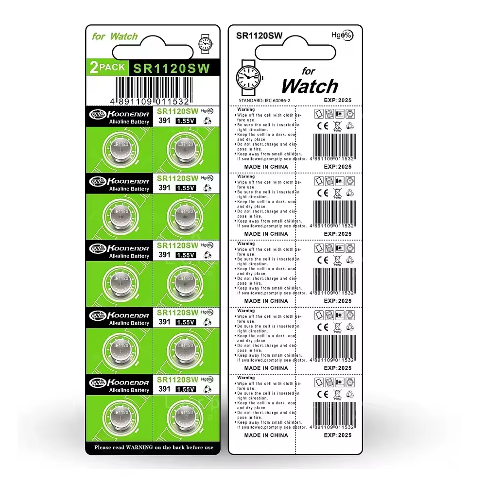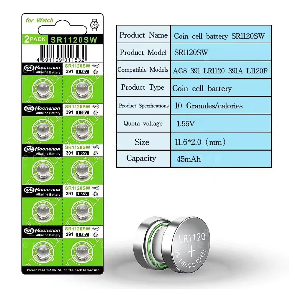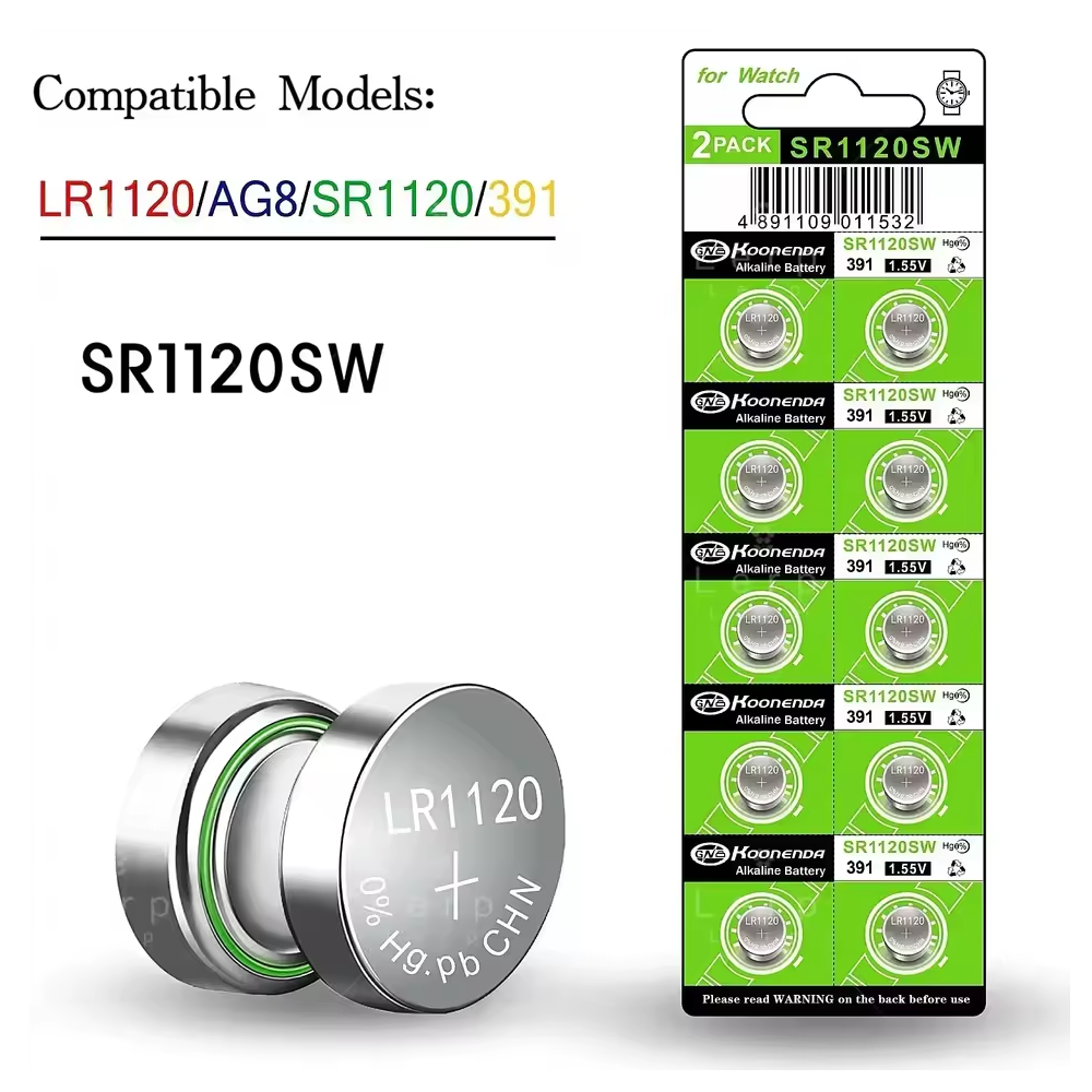 - 1x Blíster de 10 Pilas Botón AG8 Alcalinas 1.5V (LR1120 / 391)
