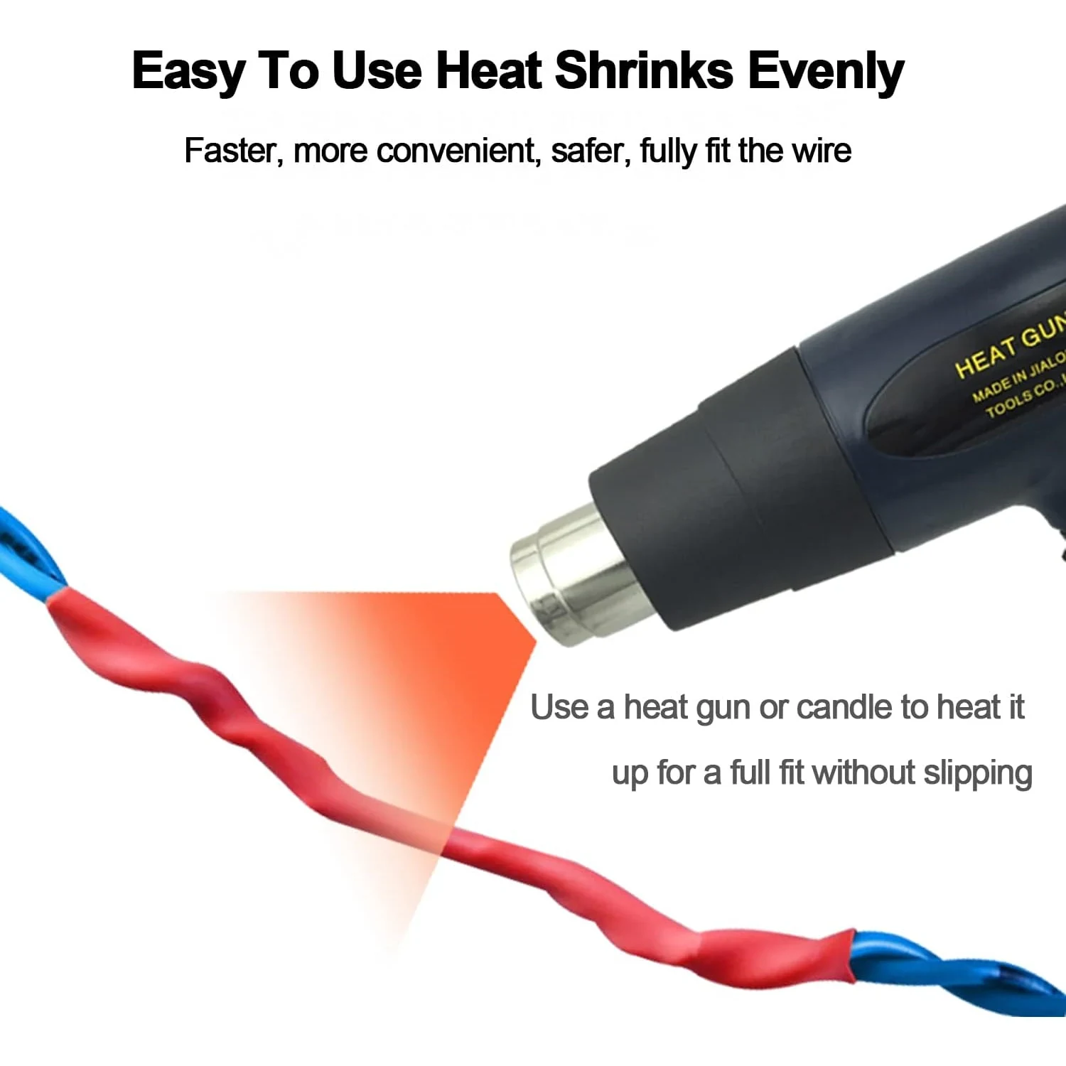 Con un ratio de contracción de 2:1, el tubo se reduce a la mitad de su diámetro original al aplicarle calor. Este proceso asegura un ajuste ceñido y profesional sobre empalmes de cables, terminales o componentes electrónicos, protegiéndolos de la humedad, el polvo y la abrasión.