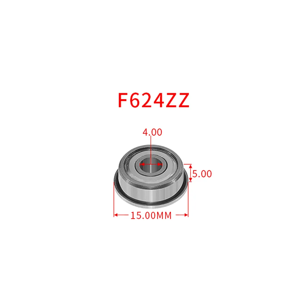 Este pack incluye dos rodamientos de bolas con pestaña F624ZZ, un componente mecánico esencial para el mantenimiento y la construcción de impresoras 3D y maquinaria CNC.