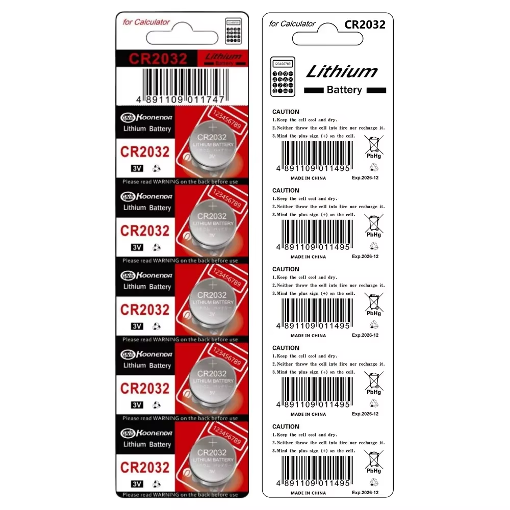 Este blíster incluye 5 unidades de la pila de botón de litio CR2032 de la marca Koonenda, una solución energética fiable y duradera para tus dispositivos electrónicos.
