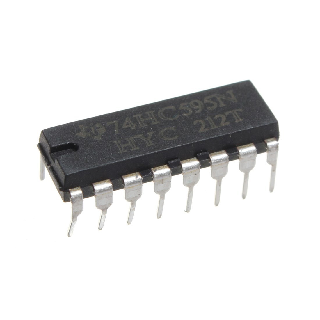 El 74HC595 (también conocido como SN74HC595N) es un circuito integrado de alta velocidad que funciona como un registro de desplazamiento de 8 bits.