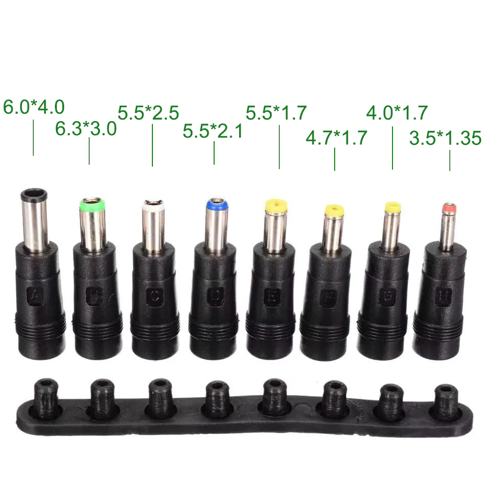Este pack incluye 8 adaptadores DC universales, diseñados para ampliar la compatibilidad de tu fuente de alimentación o cargador de portátil. Son ideales para reemplazar puntas perdidas o para usar un único cargador con múltiples dispositivos.