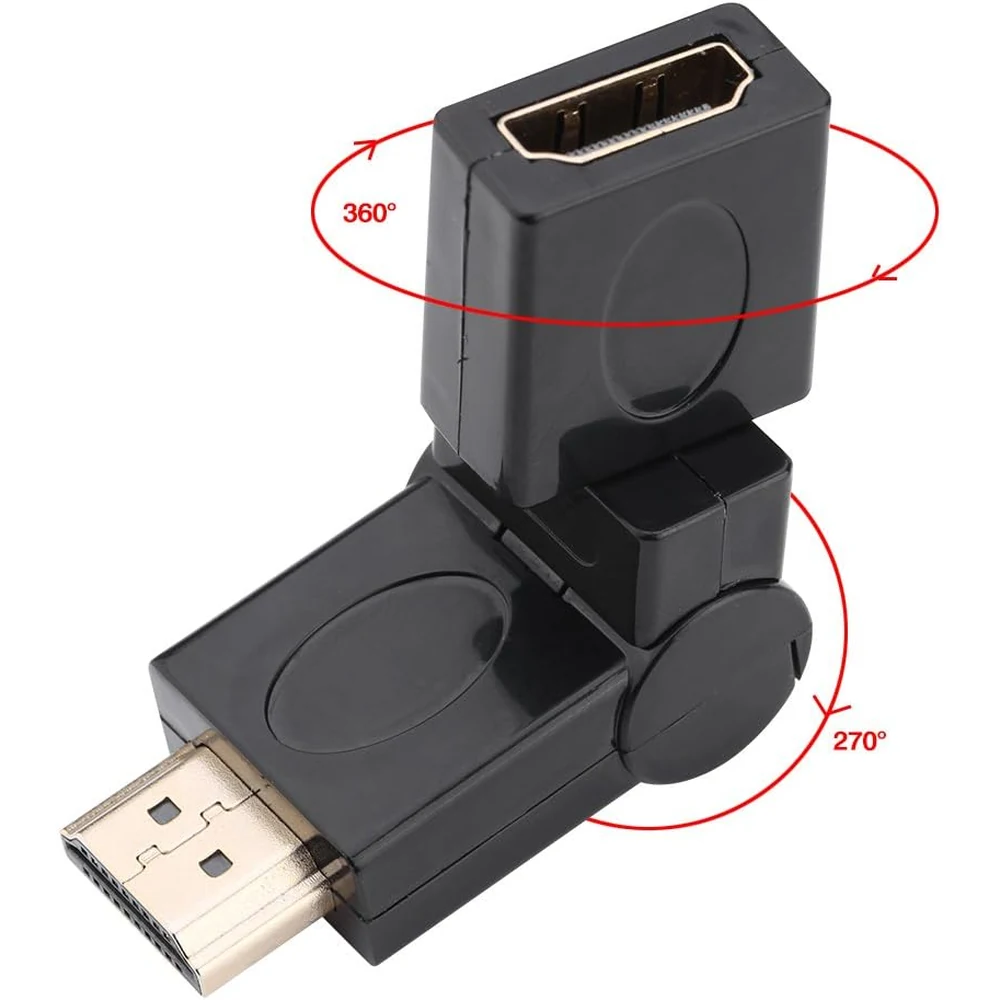 Este adaptador HDMI macho a hembra es la solución perfecta para conectar cables en lugares de difícil acceso. Su diseño articulado permite una rotación completa de 360 grados, evitando la tensión y el daño en los cables y puertos de tus dispositivos.