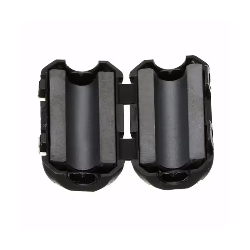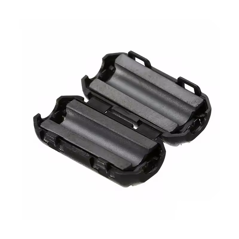 Filtro de núcleo de ferrita con clip para cables de hasta 3.5 mm. Reduce eficazmente las interferencias electromagnéticas (EMI) y de radiofrecuencia (RFI).