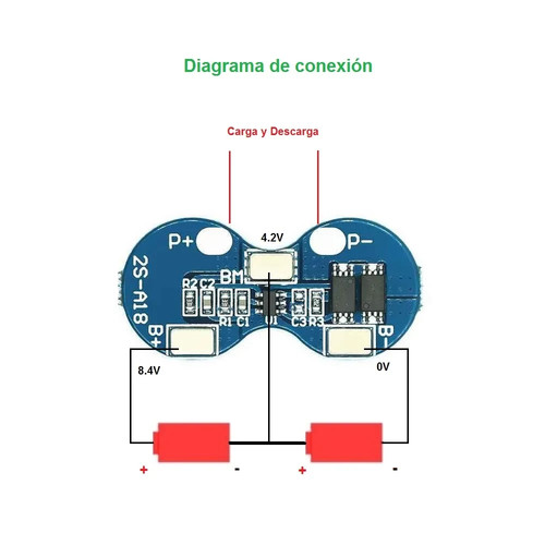 Este módulo de protección BMS (Battery Management System) está diseñado para gestionar y proteger packs de dos baterías de litio (2S) conectadas en serie, como las populares celdas 18650 o 26650.