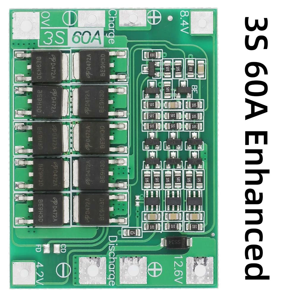 - 1x Módulo de Protección BMS 3S 60A 12.6V para Baterías de Litio 18650 (Versión Mejorada)