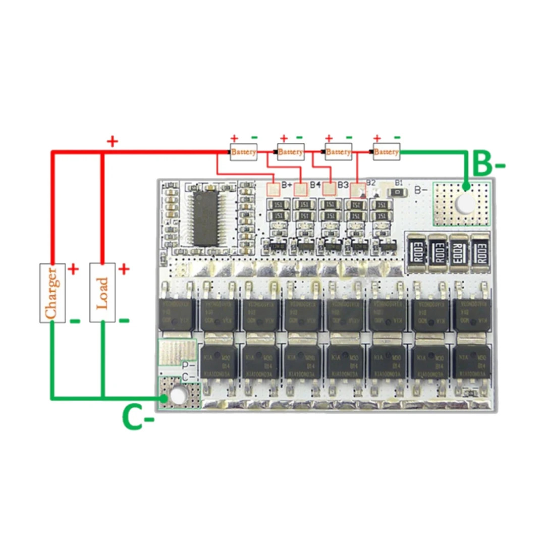 Este Módulo de Gestión de Baterías (BMS) está diseñado para proteger y gestionar packs de 4 celdas de litio (4S) en serie, como las populares 18650.