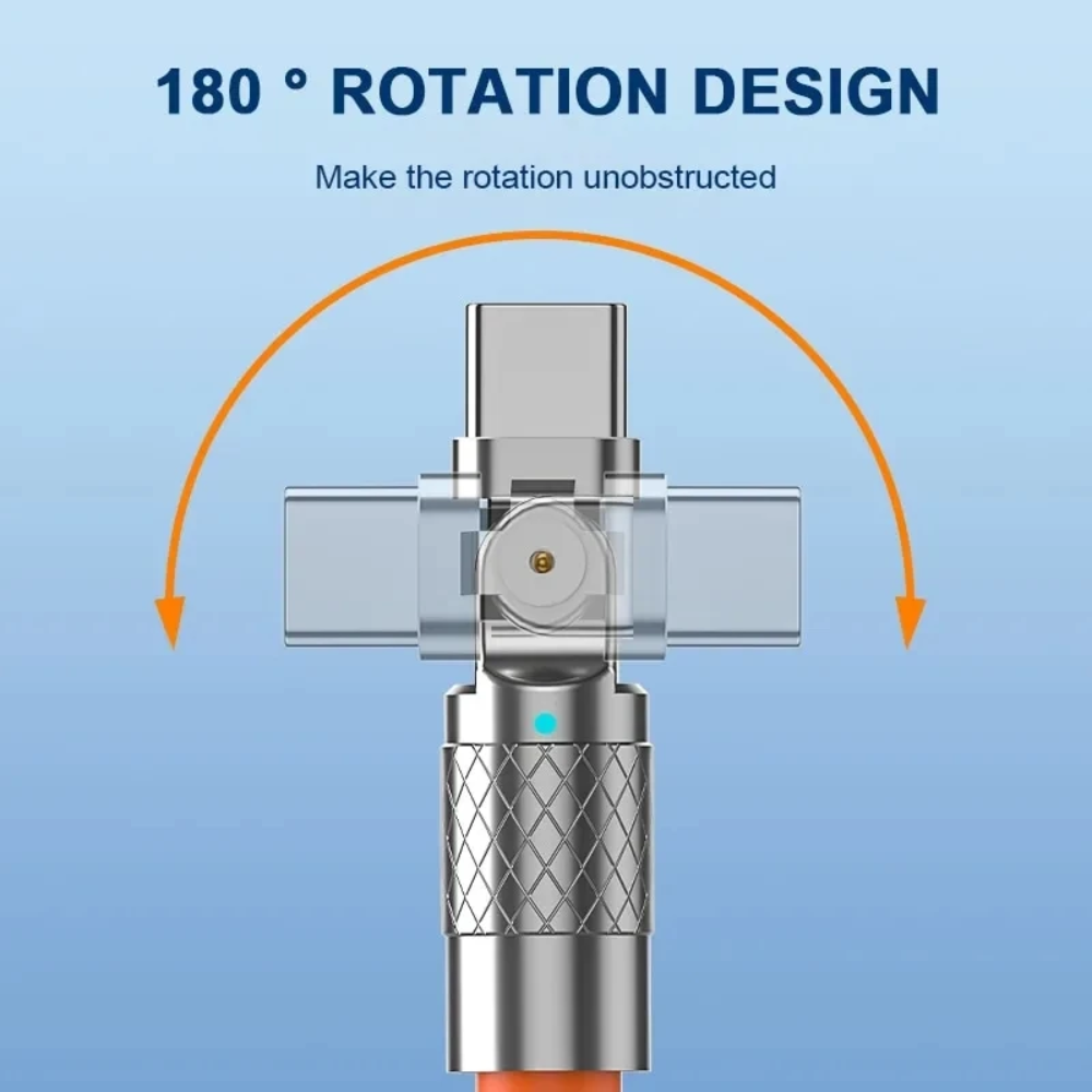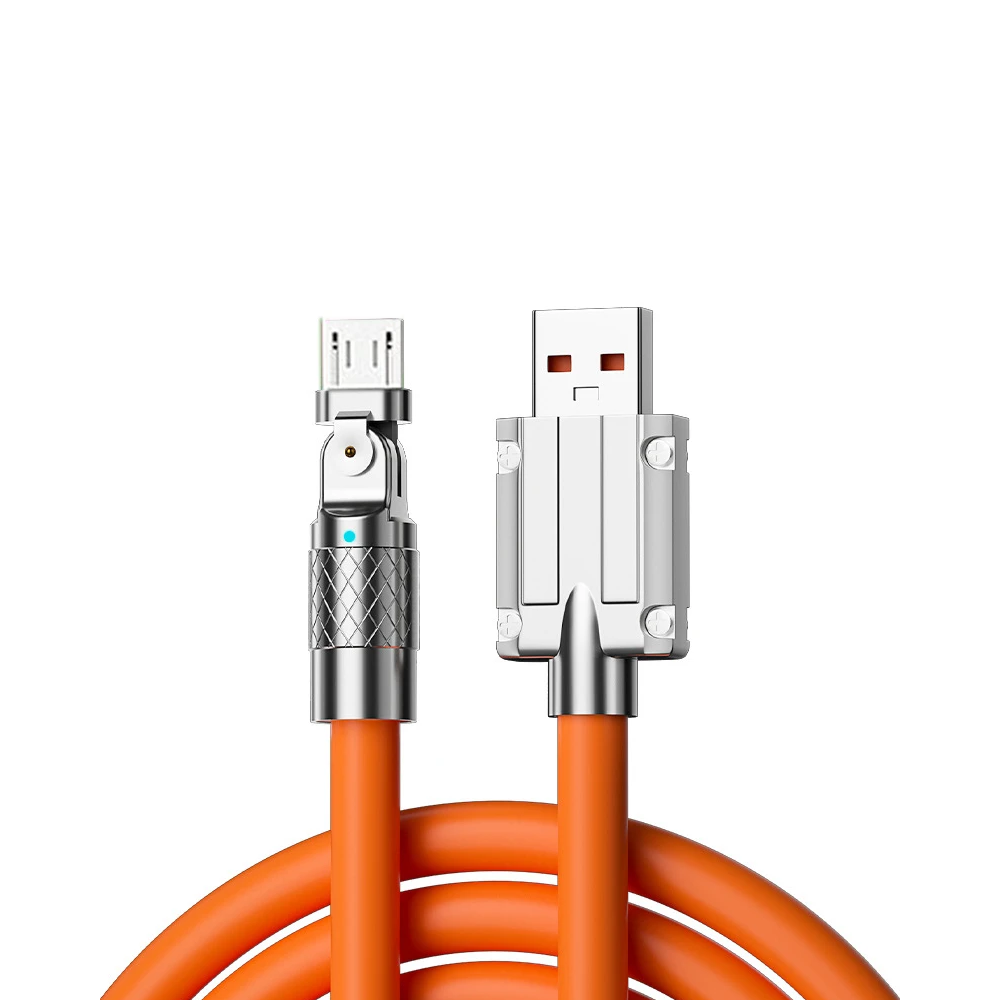 Este cable de carga USB-A a Micro-USB destaca por su innovador conector giratorio, que permite un uso cómodo del dispositivo mientras se carga, ideal para jugar o ver vídeos.