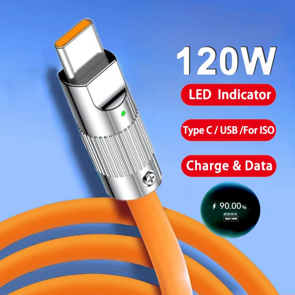 - 1x Cable USB-A a USB-C de Silicona Líquida 120 W 6 A con LED