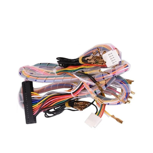 El mazo de cables se divide en terminales individuales para todos los controles necesarios, incluyendo joysticks y botones para dos jugadores, así como conexiones para la alimentación y el monedero.