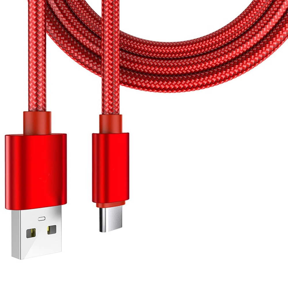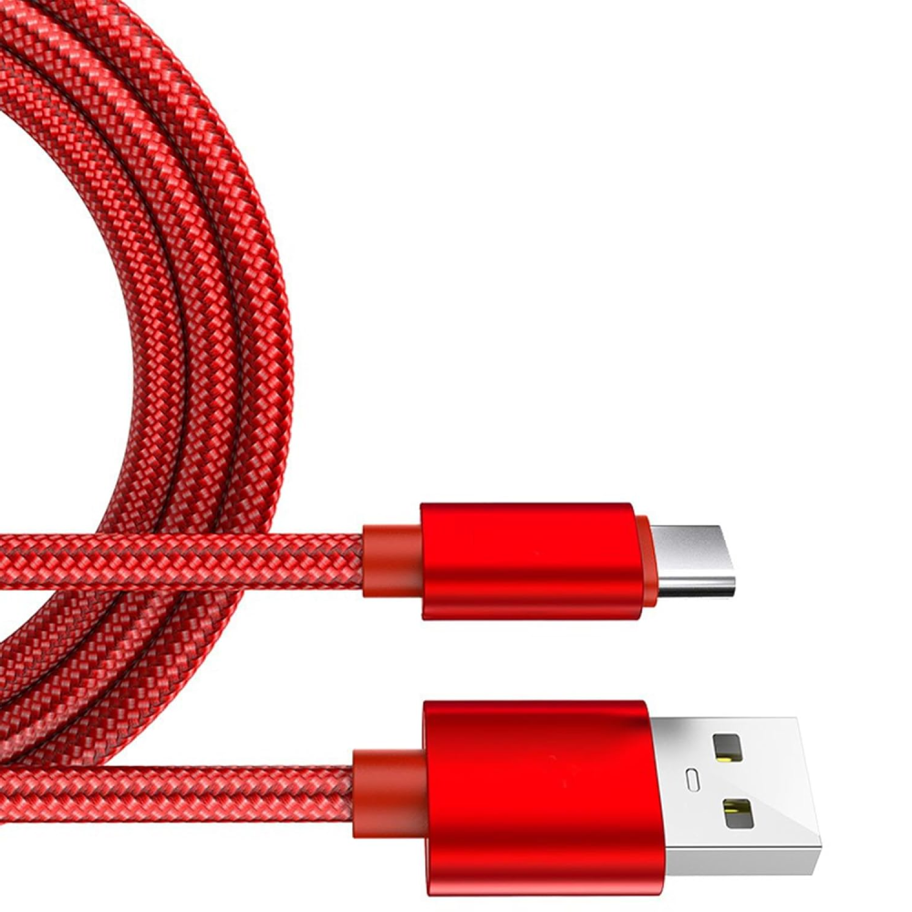 Cable usb a tipo-c , color rojo, fabricado en nylon.