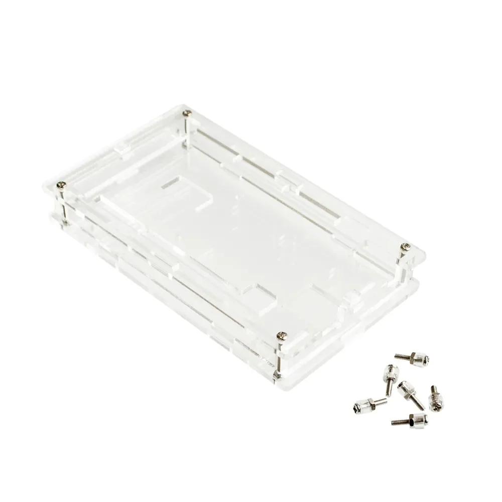 Fabricada con material acrílico de alta calidad, esta carcasa permite un acceso sencillo a todos los conectores esenciales, incluyendo el puerto USB, el conector de alimentación, los pines de E/S y el conector ICSP.