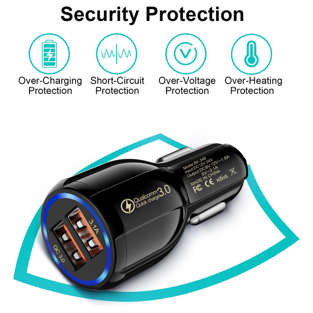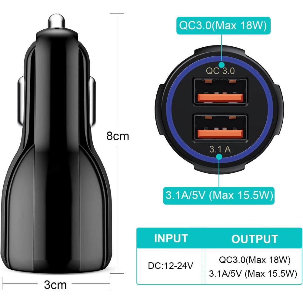 - 1x Cargador de Coche Doble USB con Carga Rápida Qualcomm QC 3.0 (35 W)