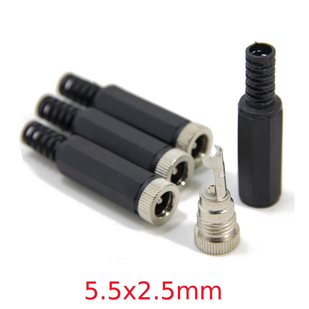 • 1x Conector aéreo DC Hembra 5.5 x 2.5 mm con carcasa