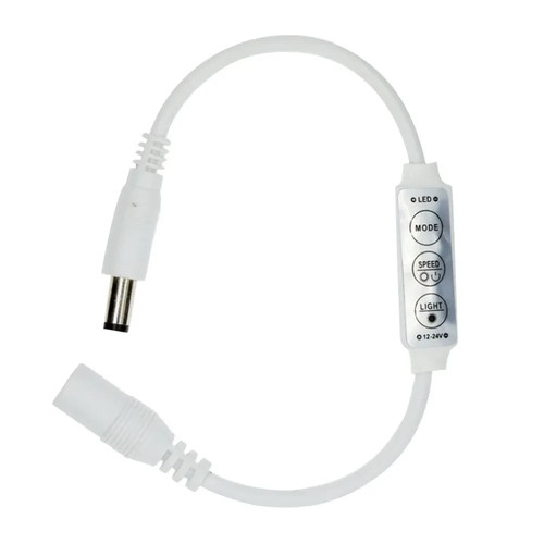 Controla fácilmente la intensidad y los efectos de tus tiras LED monocolor. Este mini dimmer con 3 teclas es compatible con 12V y 24V DC. Ideal para SMD 5050/3528.