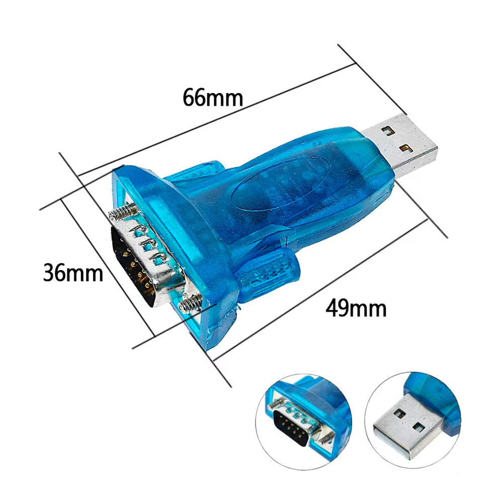 - 1x Adaptador Conversor USB a Serie RS232 DB9 (Chip CH340)