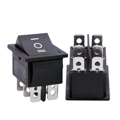 - 1X INTERRUPTOR BASCULANTE SPDT 6 PINES Y 3 POSICIONES ON-OFF CON KCD4 NEGRO 220V 16A