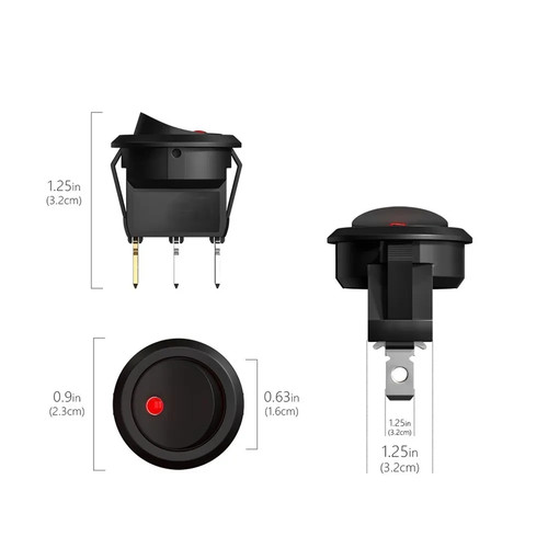 - 1x Interruptor Basculante Redondo SPST 20 mm con Luz LED Naranja 220 V 6 A