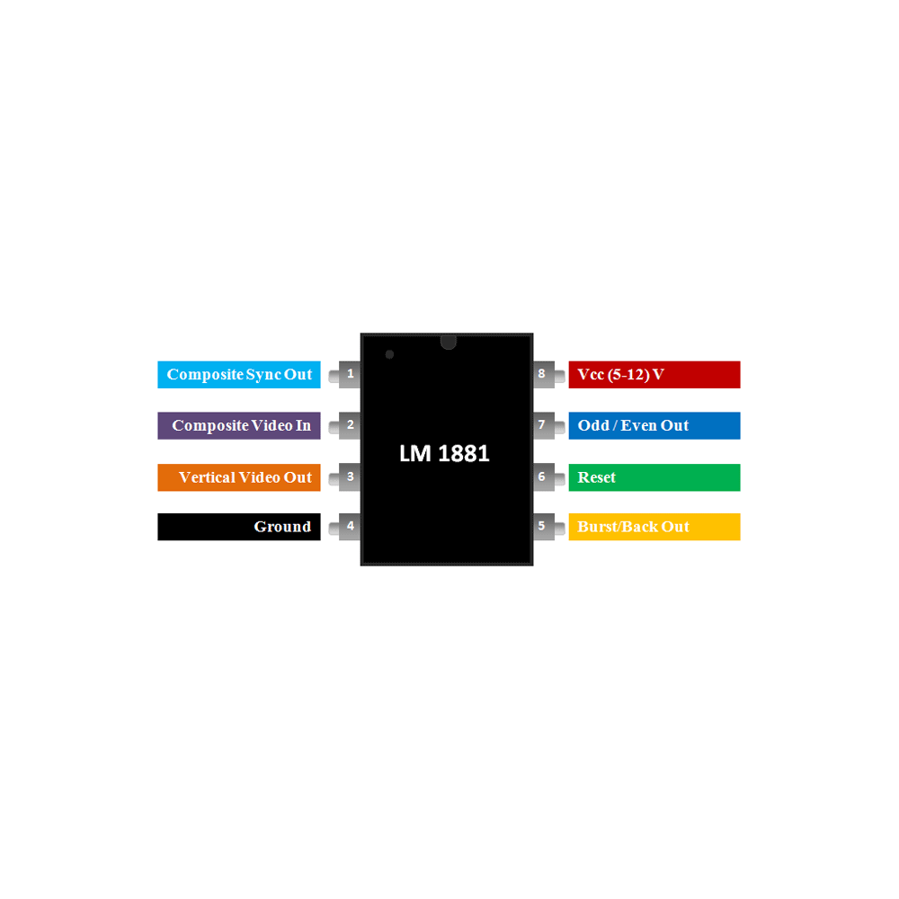 El LM1881 es un circuito integrado diseñado para extraer información de temporización de señales de vídeo analógico. Es capaz de separar el sincronismo compuesto, el sincronismo vertical, la información de campo par/impar y la ráfaga de color de fuentes de vídeo estándar como NTSC, PAL y SECAM.
