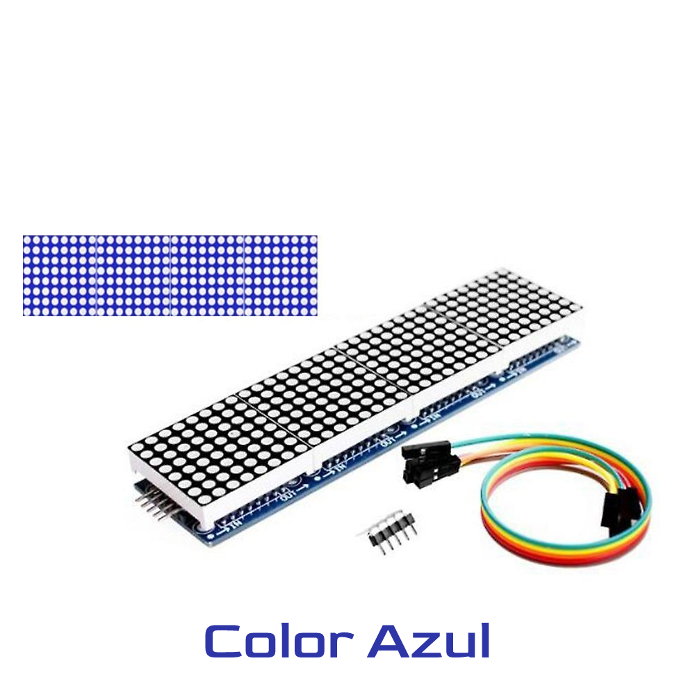 Display de matriz de puntos LED azul de 32×8 (256 LEDs) con 4 controladores MAX7219. Fácil de controlar vía SPI con Arduino o Raspberry Pi. Ideal para texto y gráficos.