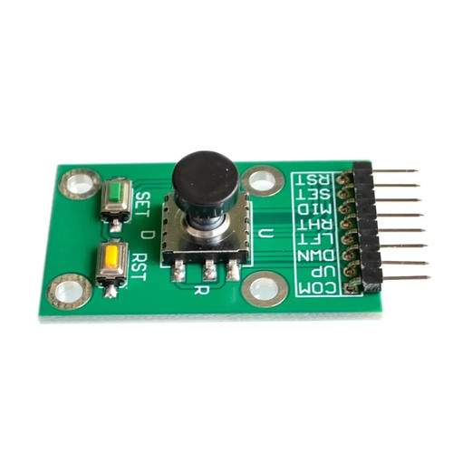 Este módulo de navegación es una solución compacta y eficiente para añadir controles de interfaz a tus proyectos de electrónica. Incorpora un joystick táctil con movimiento en 5 direcciones (arriba, abajo, izquierda, derecha y pulsación central) y dos botones pulsadores adicionales, SET y RST.