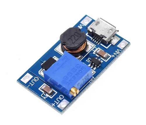 - 1 x Módulo MT3608 Micro USB 2A Booster DC-DC 2/24V to 5/9/12/28V tensión ajustable Arduino