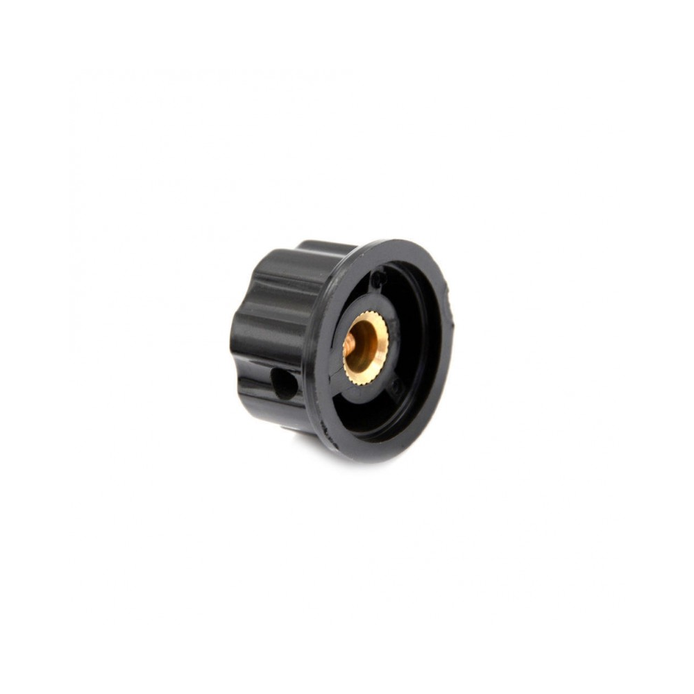 - 1x Perilla Potenciómetro MF-A03 27mm para Eje 6.3mm Negro y Plata