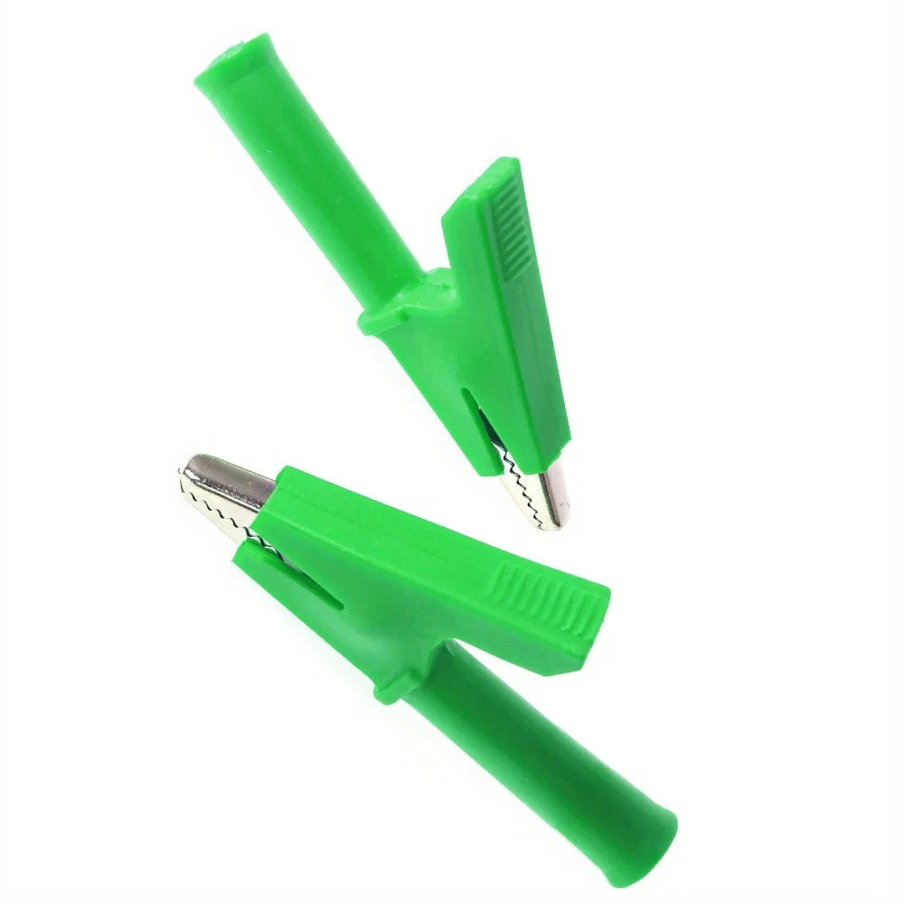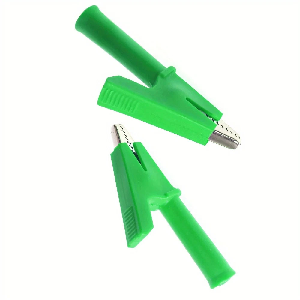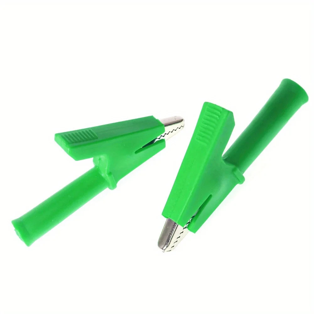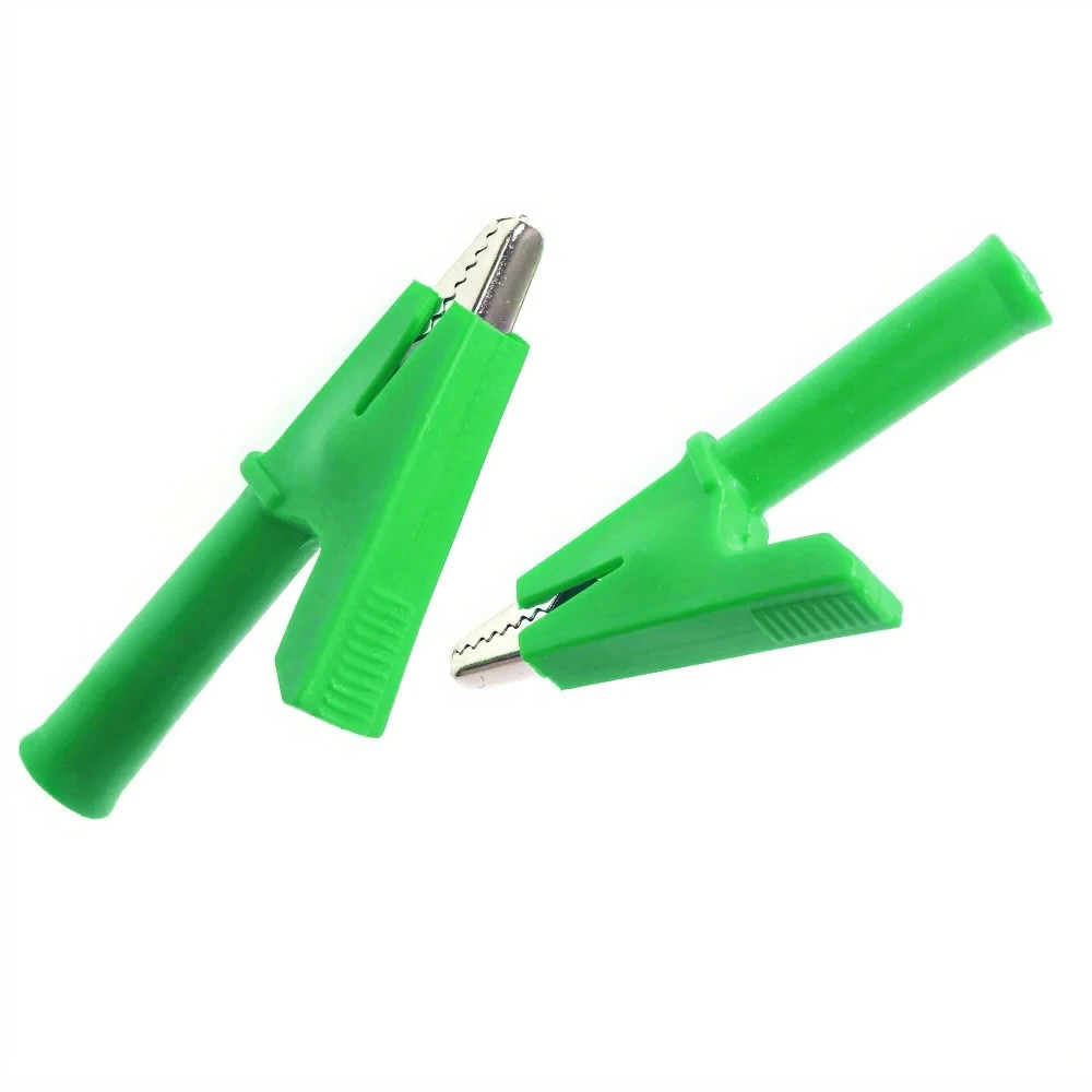 Esta pinza cocodrilo aislada en color VERDE es una herramienta esencial para cualquier laboratorio, taller de electrónica o proyecto DIY.
