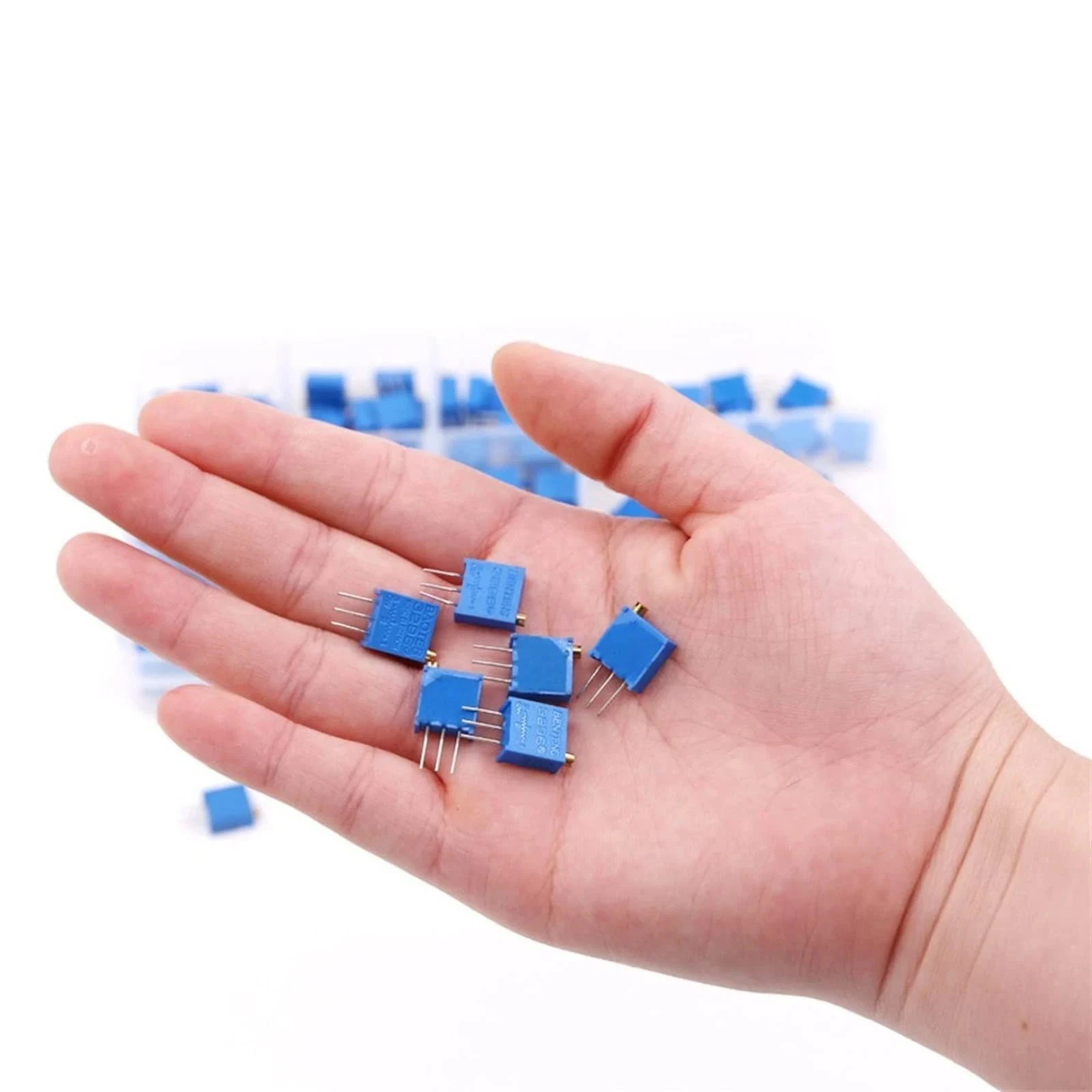 Su diseño robusto y sellado lo protege contra la humedad y contaminantes, permitiendo su uso en entornos industriales exigentes. El modelo 3296W cuenta con una disposición de pines superior (Top Adjust), lo que facilita el ajuste mediante un destornillador pequeño una vez que el componente ha sido soldado en la placa de circuito impreso (PCB) o insertado en una protoboard.