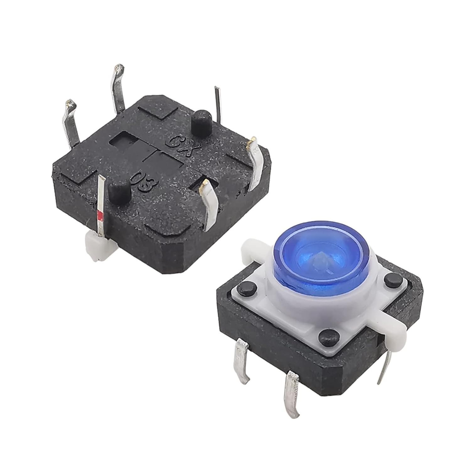 Este pulsador táctil de 12x12x7 mm es una solución compacta y fiable para tus proyectos electrónicos. Incorpora un LED de color azul de alta visibilidad, perfecto para señalizar su estado o facilitar su localización en entornos con poca luz.