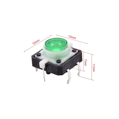 - 1x Pulsador Táctil Momentáneo 12x12x7 mm con LED Verde para PCB