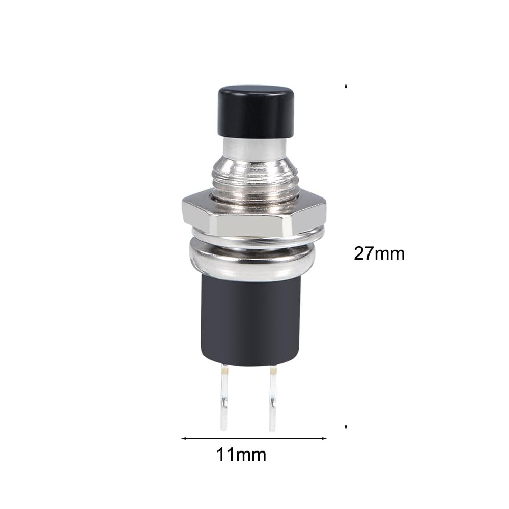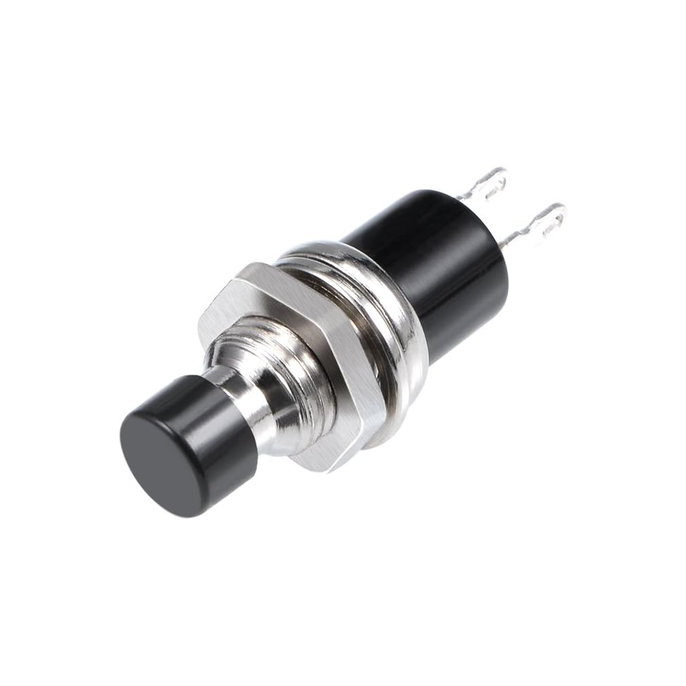 Este interruptor cuenta con un contacto SPST normalmente abierto (NO). La corriente solo fluye mientras se mantiene presionado el botón, volviendo a su estado de reposo automáticamente al soltarlo.