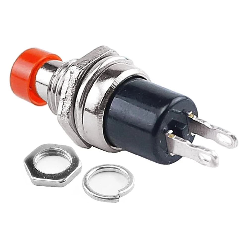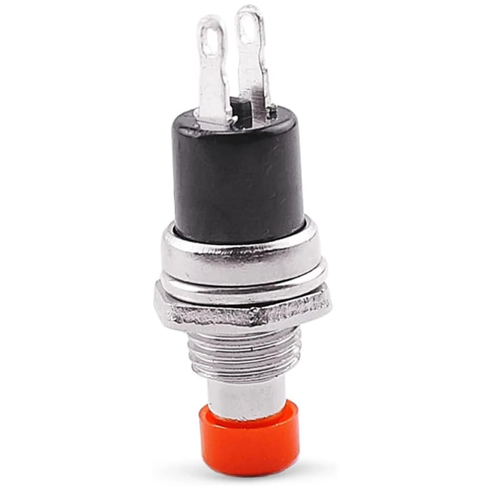 El contacto es de tipo SPST (Single Pole, Single Throw) y se encuentra Normalmente Abierto (NO). Esto significa que el circuito se cierra y permite el paso de la corriente únicamente mientras el botón está presionado. Al soltarlo, un muelle interno lo devuelve a su posición original, interrumpiendo el circuito.