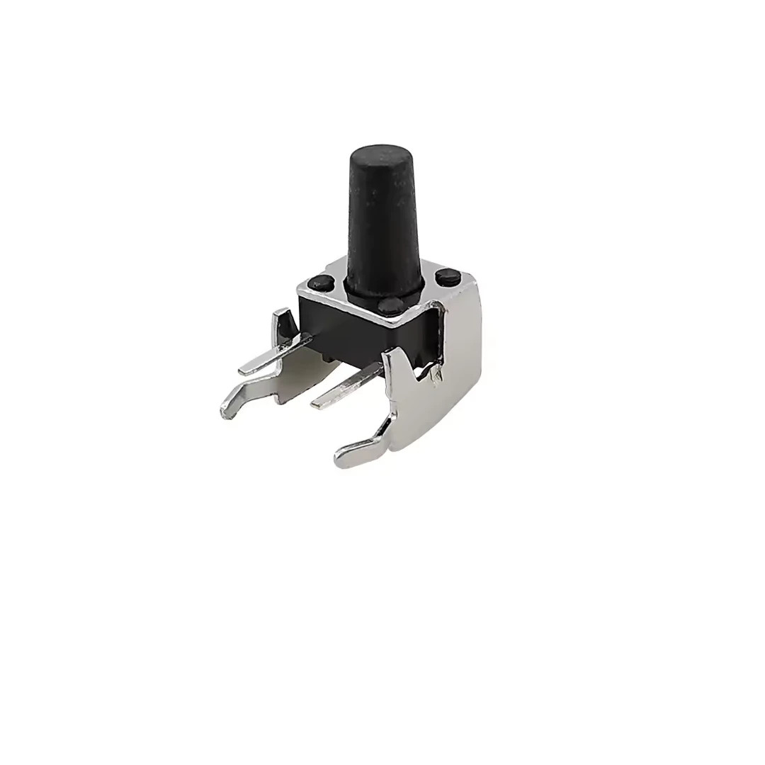 El soporte metálico (stent) integrado garantiza una fijación mecánica robusta, absorbiendo el esfuerzo de cada pulsación para proteger las pistas y soldaduras eléctricas de posibles daños por fatiga. Su configuración de 4 pines DIP permite una instalación horizontal estable, ofreciendo una respuesta táctil nítida y un «clic» audible claro en cada activación.