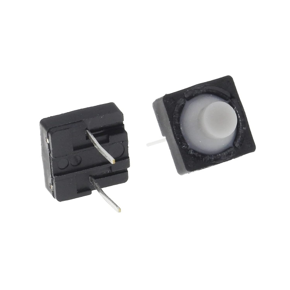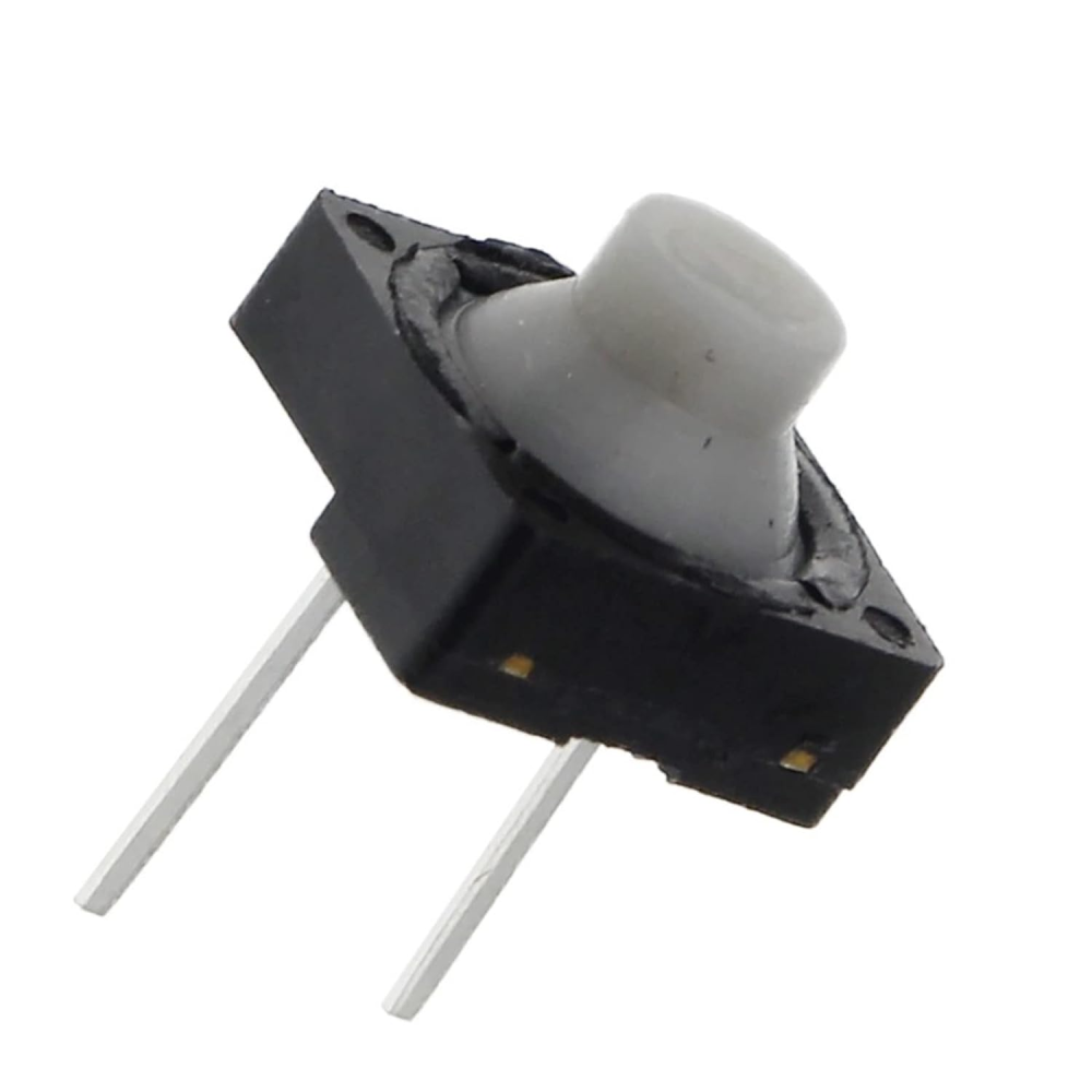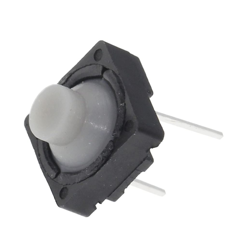 Su diseño de 2 pines con tecnología de montaje por orificio pasante (THT) garantiza una compatibilidad total con protoboards estándar y placas de circuito impreso (PCB). El mecanismo funciona bajo el principio SPST-NO (Normalmente Abierto), cerrando el circuito momentáneamente solo mientras se mantiene la presión sobre la tecla gris.