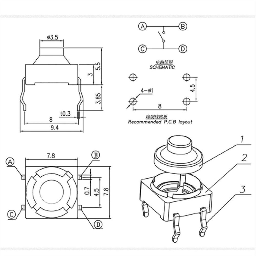 Su configuración de 4 pines no solo ofrece una fijación más robusta a la placa de circuito impreso (PCB) mediante montaje de orificio pasante (THT), sino que también permite realizar puentes eléctricos internos, facilitando el diseño de pistas en circuitos complejos. El interruptor es de tipo SPST-NO (Normalmente Abierto), cerrando el contacto de forma momentánea bajo presión.