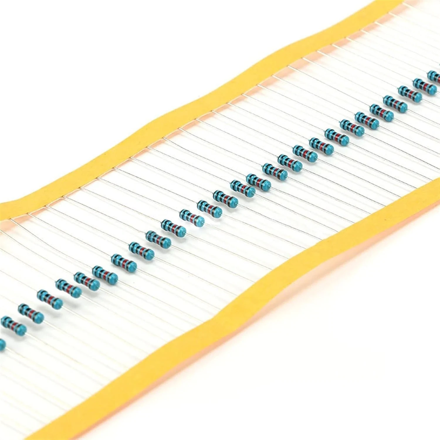 Con una tolerancia de solo ±1%, es perfecta para circuitos que requieren valores precisos, como en divisores de voltaje, filtros de señal o como resistencia de polarización para transistores. Su potencia nominal de 1/4W (0.25W) la hace adecuada para la mayoría de aplicaciones de baja potencia.