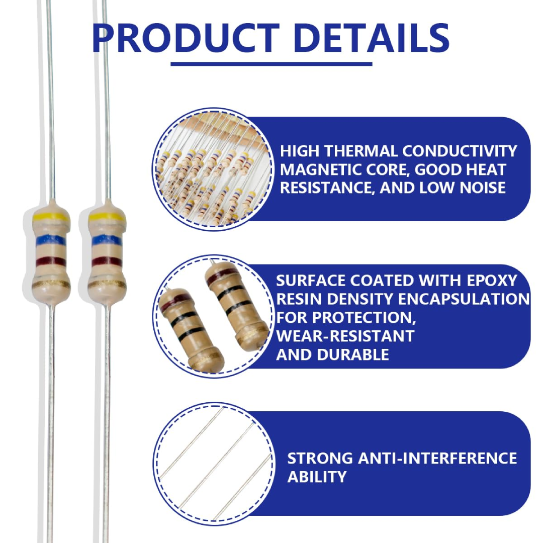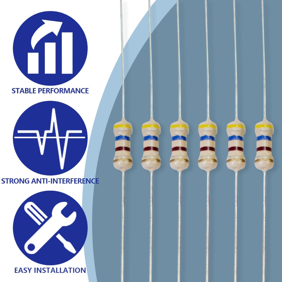 Esta resistencia de película de carbón es un componente pasivo esencial para una amplia variedad de proyectos de electrónica, prototipado y reparación.
