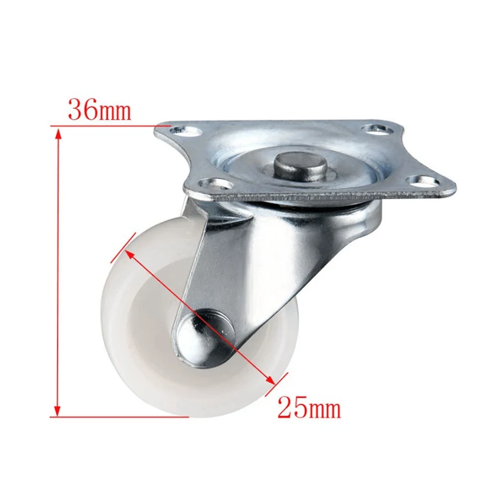 Rueda loca giratoria con base metálica y rueda de nylon de 25 mm. Proporciona un punto de apoyo estable con giro de 360°, ideal para chasis de robots, Smart Car y proyectos de robótica.