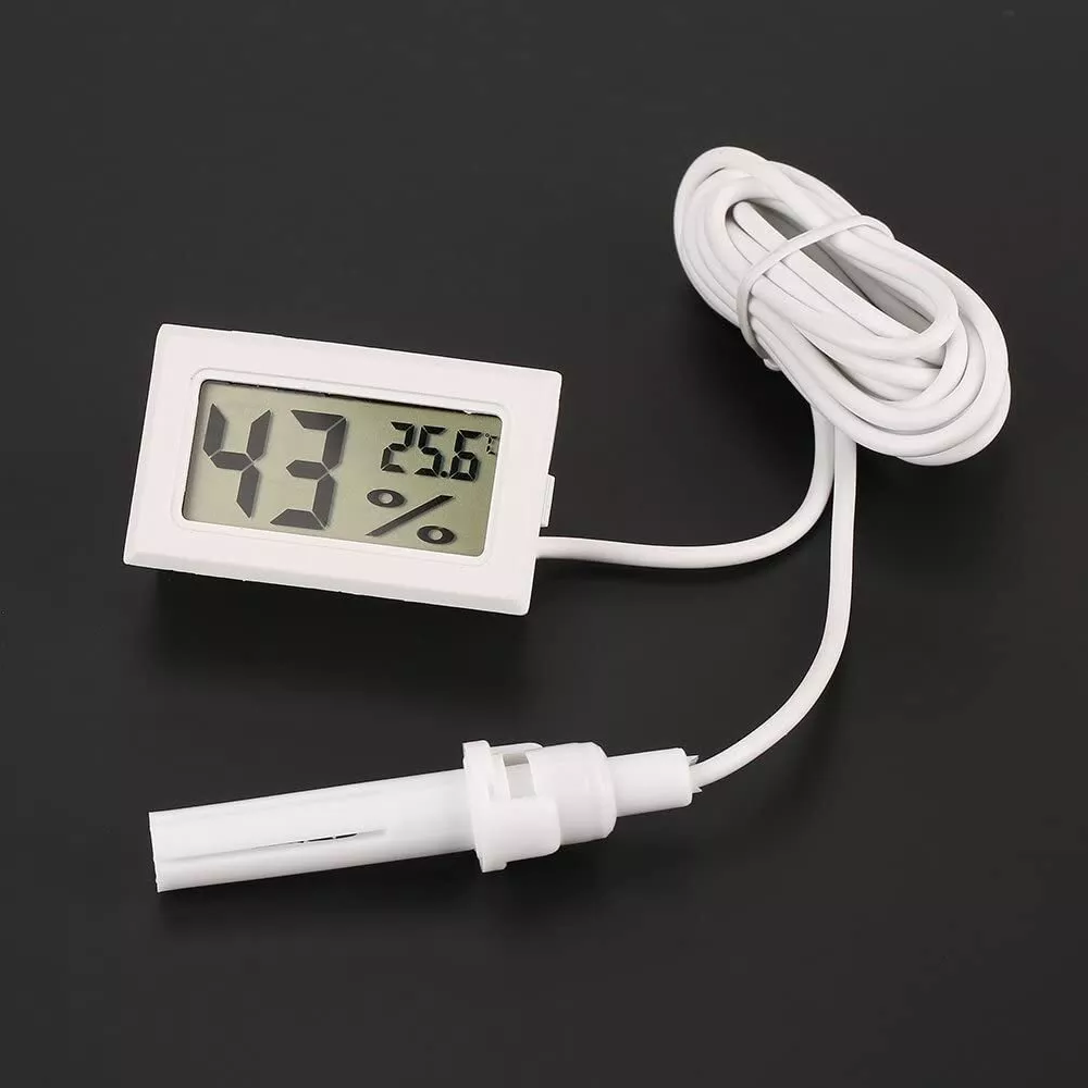 Gracias a su sonda externa con un cable de aproximadamente 1.5 metros, puedes colocar el sensor en el punto exacto que necesitas medir, manteniendo la pantalla en un lugar visible y accesible. Su diseño compacto y su alimentación por una pila LR44 lo hacen versátil y fácil de instalar en terrarios, incubadoras, humidores, invernaderos o cualquier espacio que requiera un control ambiental estricto.